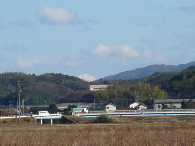 わが家の少し行ったところから薄っすらと白く見える『大山(だいせん)』です。